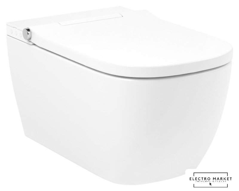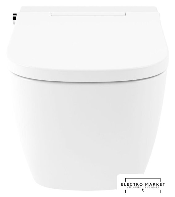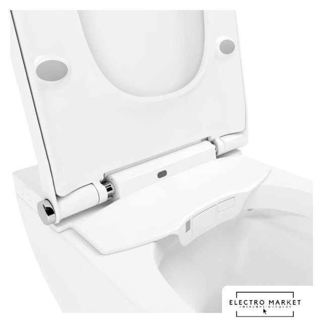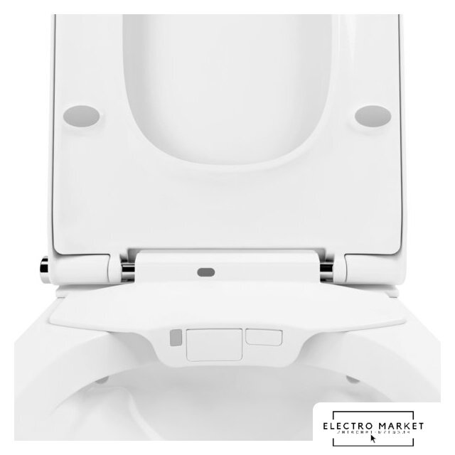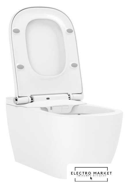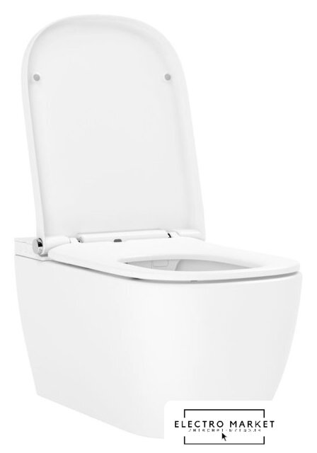 умный (электронный) унитаз, подвесной (с биде), конструкция: без бачка, задний подвод воды, горизонтальный выпуск, двухрежимный слив, с сиденьем, безободковый