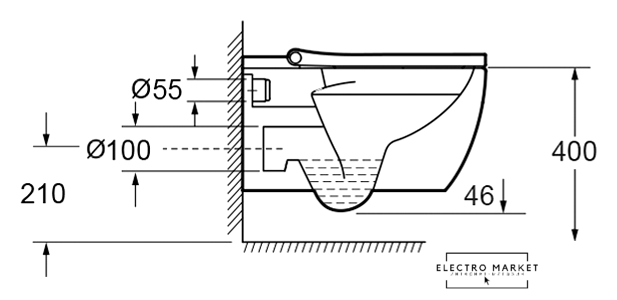 подвесной, задний подвод воды, горизонтальный выпуск, с сиденьем, безободковый