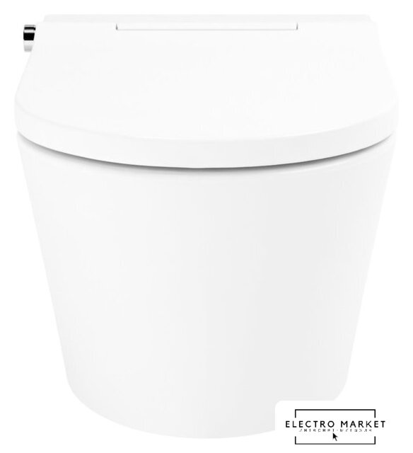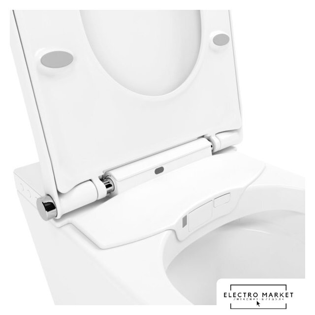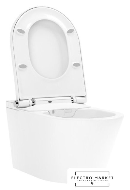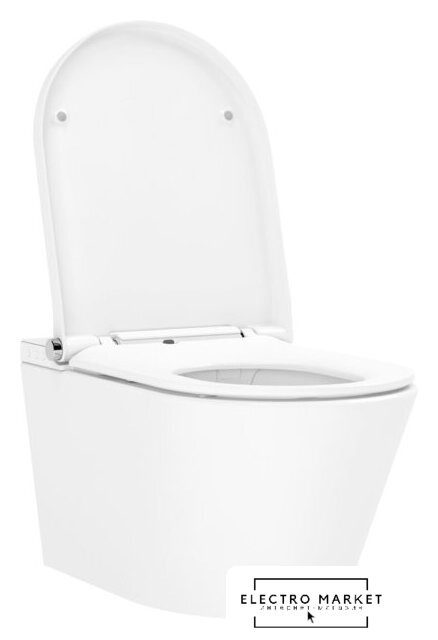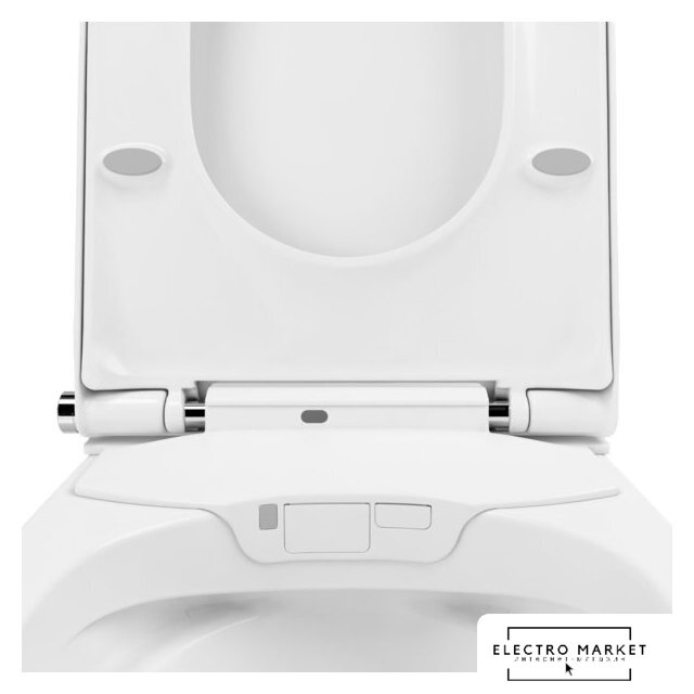 умный (электронный) унитаз, подвесной (с биде), конструкция: без бачка, задний подвод воды, горизонтальный выпуск, двухрежимный слив, с сиденьем, безободковый