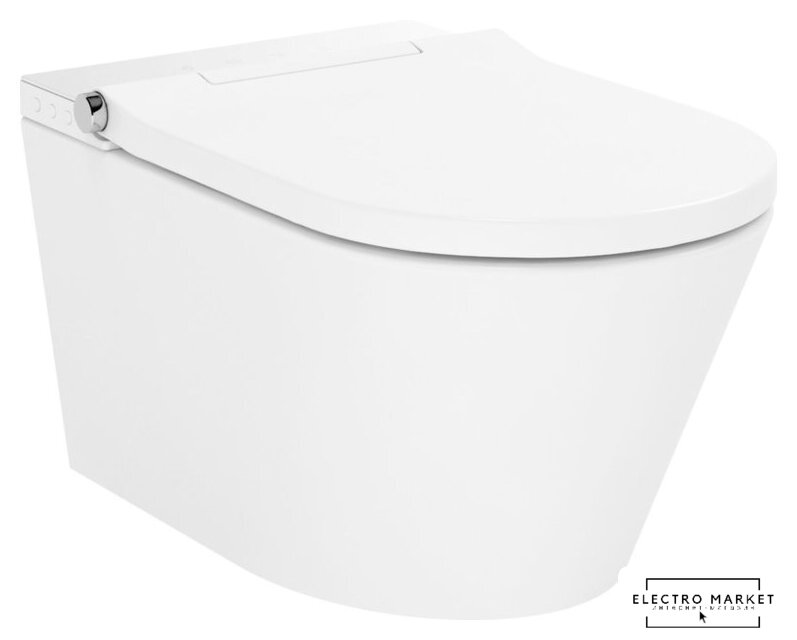 умный (электронный) унитаз, подвесной (с биде), конструкция: без бачка, задний подвод воды, горизонтальный выпуск, с сиденьем