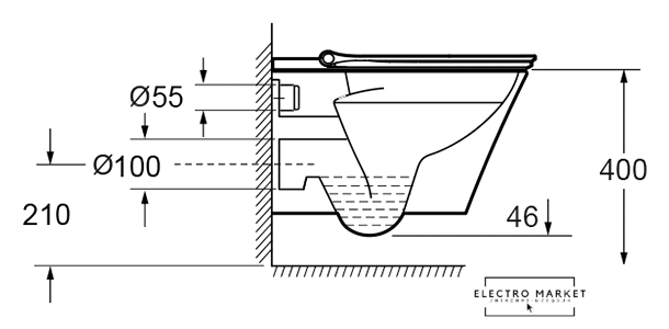 подвесной, задний подвод воды, горизонтальный выпуск, с сиденьем, безободковый