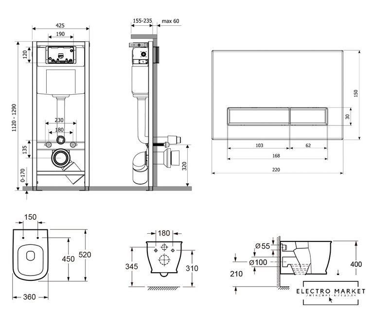 Инсталляция | (+ кнопка в комплекте) |