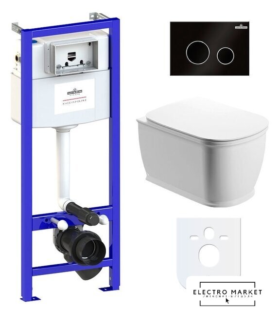 подвесной, без бачка, задний подвод воды, горизонтальный выпуск, двухрежимный слив, с сиденьем