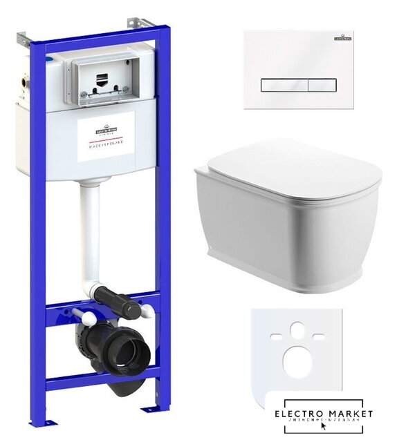 подвесной, без бачка, задний подвод воды, горизонтальный выпуск, двухрежимный слив, с сиденьем