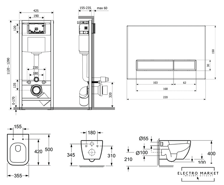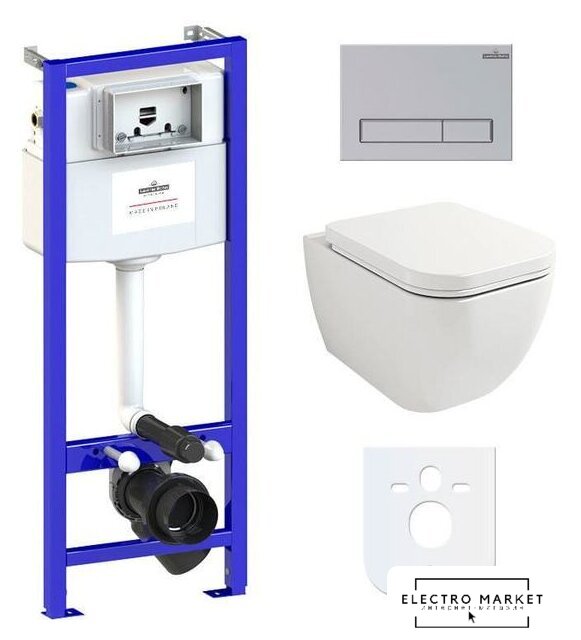 подвесной, без бачка, задний подвод воды, горизонтальный выпуск, двухрежимный слив, с сиденьем