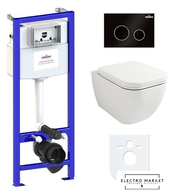 подвесной, без бачка, задний подвод воды, горизонтальный выпуск, двухрежимный слив, с сиденьем