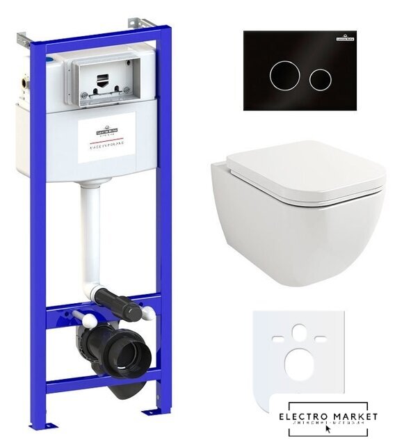подвесной, без бачка, задний подвод воды, горизонтальный выпуск, двухрежимный слив, с сиденьем