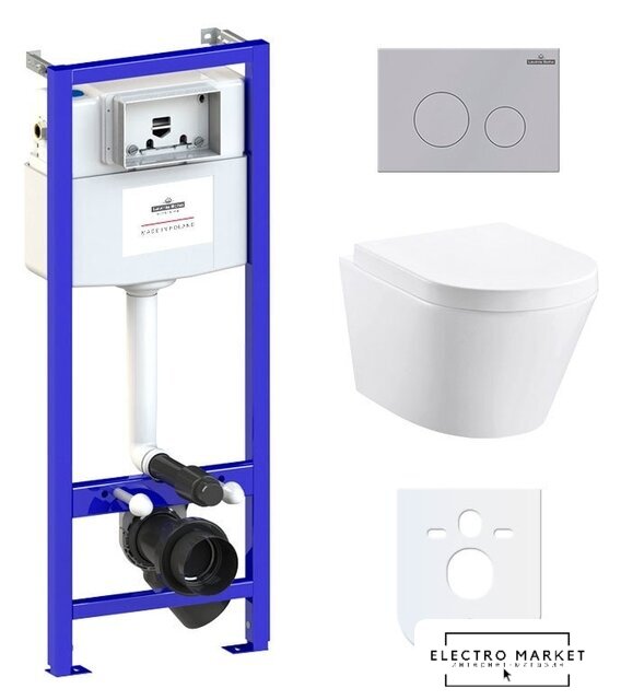 подвесной, без бачка, задний подвод воды, горизонтальный выпуск, двухрежимный слив, с сиденьем