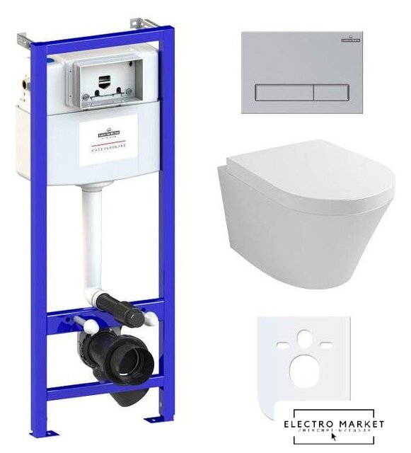 подвесной, без бачка, задний подвод воды, горизонтальный выпуск, двухрежимный слив, с сиденьем