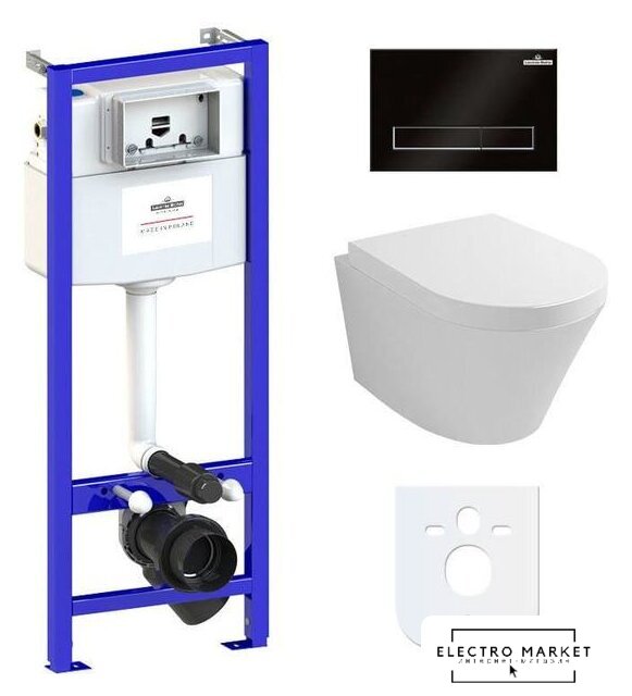 подвесной, без бачка, задний подвод воды, горизонтальный выпуск, двухрежимный слив, с сиденьем