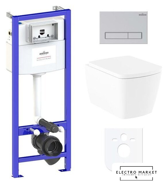 подвесной, без бачка, задний подвод воды, горизонтальный выпуск, двухрежимный слив, с сиденьем