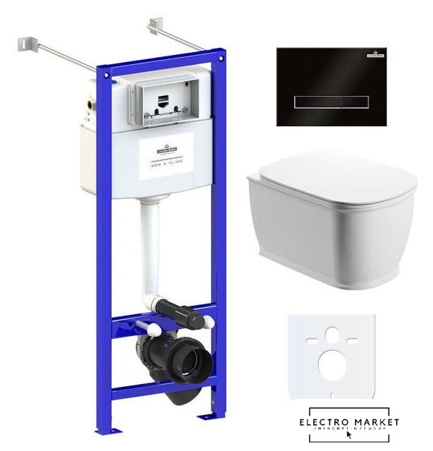 подвесной, без бачка, задний подвод воды, горизонтальный выпуск, двухрежимный слив, с сиденьем