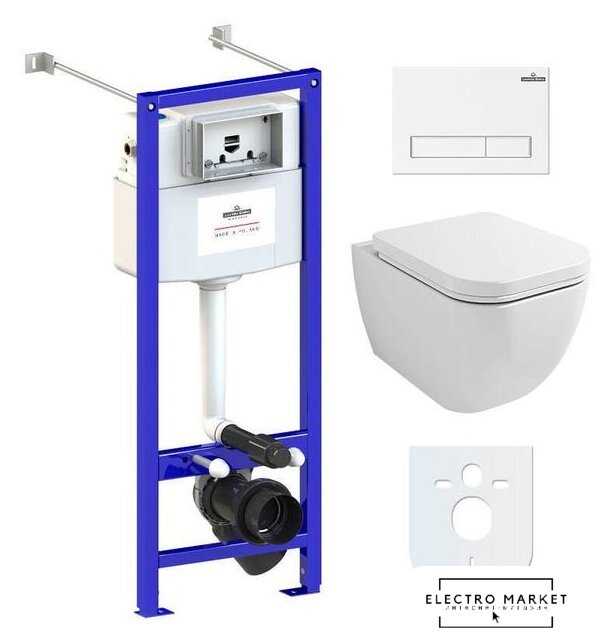 подвесной, без бачка, задний подвод воды, горизонтальный выпуск, двухрежимный слив, с сиденьем