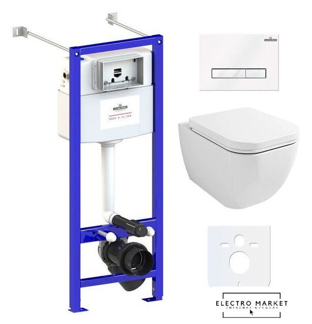 подвесной, конструкция: без бачка, задний подвод воды, горизонтальный выпуск, двухрежимный слив, с сиденьем