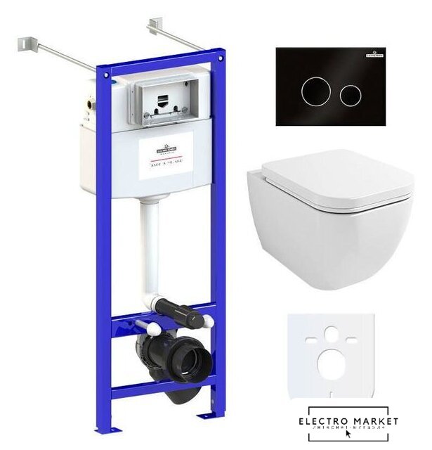подвесной, без бачка, задний подвод воды, горизонтальный выпуск, двухрежимный слив, с сиденьем