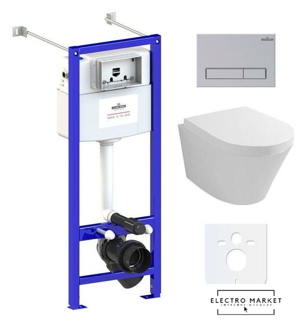 подвесной, конструкция: без бачка, задний подвод воды, горизонтальный выпуск, двухрежимный слив, с сиденьем