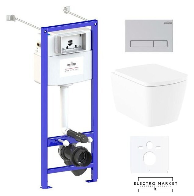 подвесной, без бачка, задний подвод воды, горизонтальный выпуск, двухрежимный слив, с сиденьем