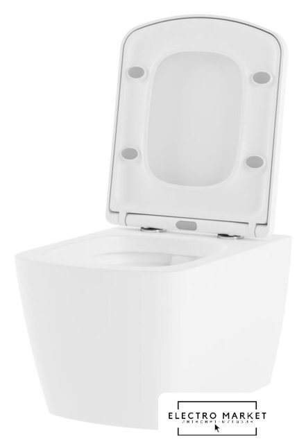 подвесной, без бачка, задний подвод воды, горизонтальный выпуск, двухрежимный слив, с сиденьем