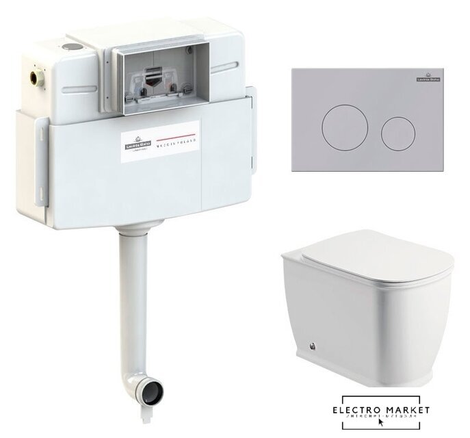 приставной, низкорасположенный бачок, задний подвод воды, универсальный выпуск, двухрежимный слив, с сиденьем
