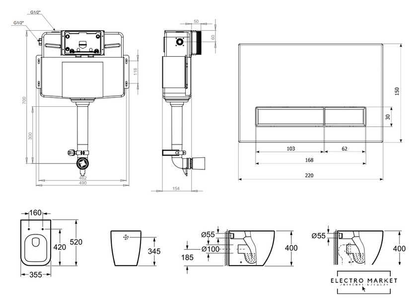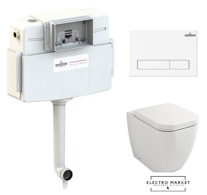 приставной, низкорасположенный бачок, задний подвод воды, универсальный выпуск, двухрежимный слив, с сиденьем