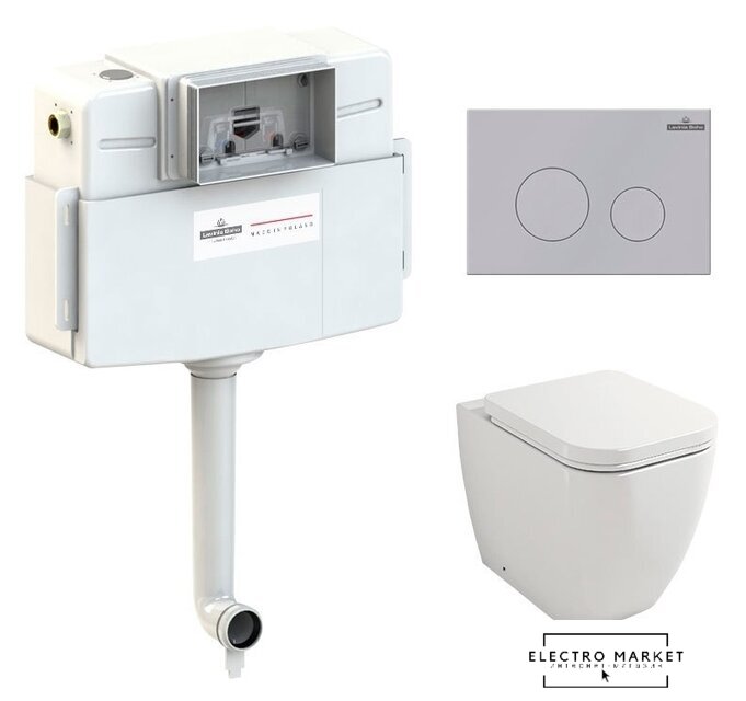 приставной, низкорасположенный бачок, задний подвод воды, универсальный выпуск, двухрежимный слив, с сиденьем
