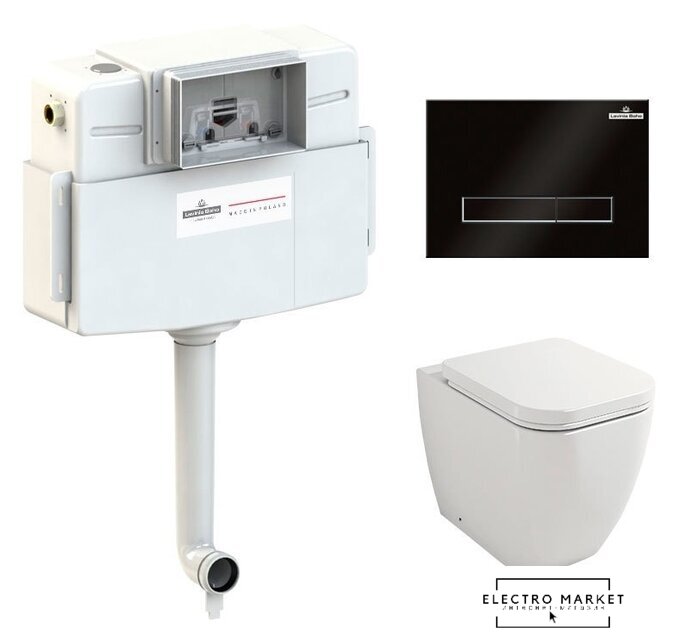 приставной, низкорасположенный бачок, задний подвод воды, универсальный выпуск, двухрежимный слив, с сиденьем