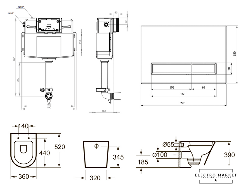 приставной, низкорасположенный бачок, задний подвод воды, универсальный выпуск, двухрежимный слив, с сиденьем