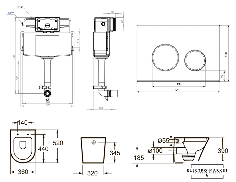 приставной, низкорасположенный бачок, задний подвод воды, универсальный выпуск, двухрежимный слив, с сиденьем