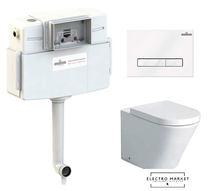 приставной, низкорасположенный бачок, задний подвод воды, универсальный выпуск, двухрежимный слив, с сиденьем