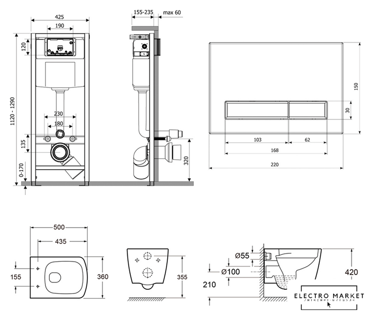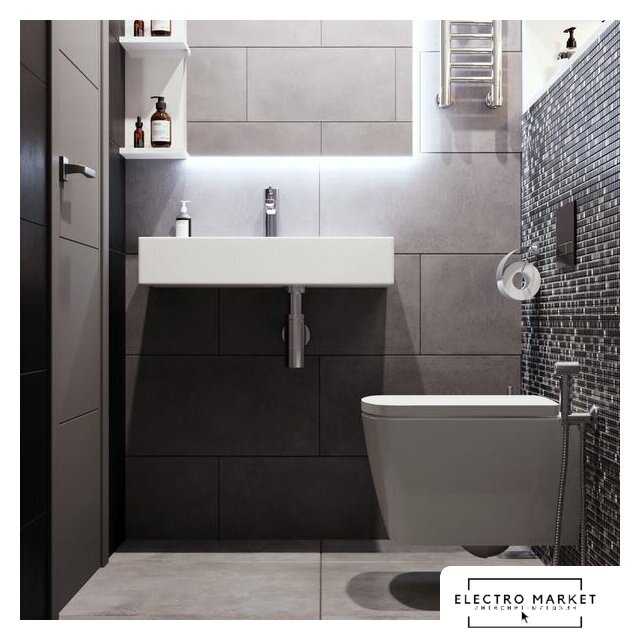 подвесной, без бачка, задний подвод воды, горизонтальный выпуск, двухрежимный слив, с сиденьем