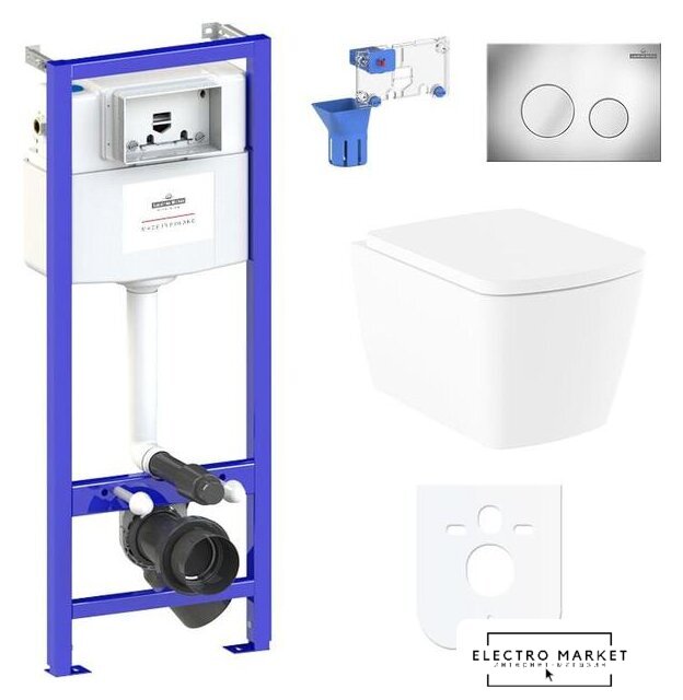 подвесной, конструкция: без бачка, задний подвод воды, горизонтальный выпуск, двухрежимный слив, с сиденьем