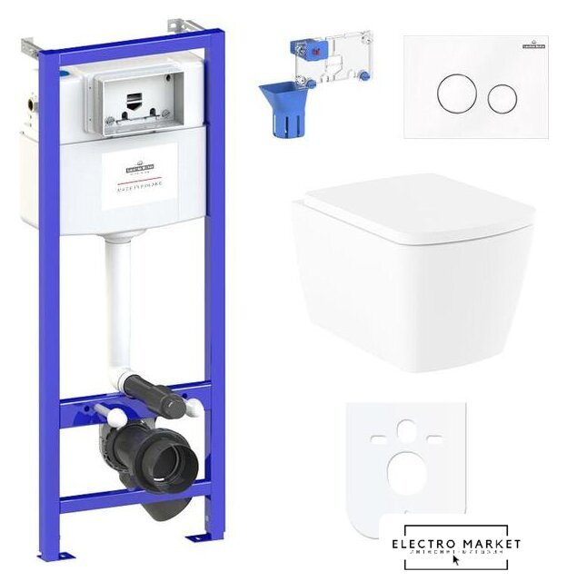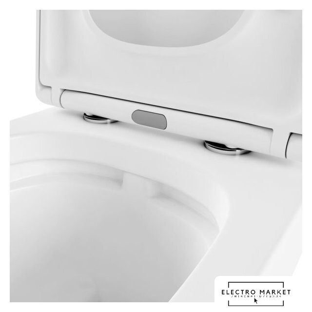 подвесной, конструкция: без бачка, задний подвод воды, горизонтальный выпуск, двухрежимный слив, с сиденьем