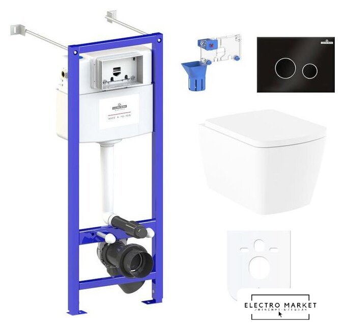 подвесной, без бачка, задний подвод воды, горизонтальный выпуск, двухрежимный слив, с сиденьем