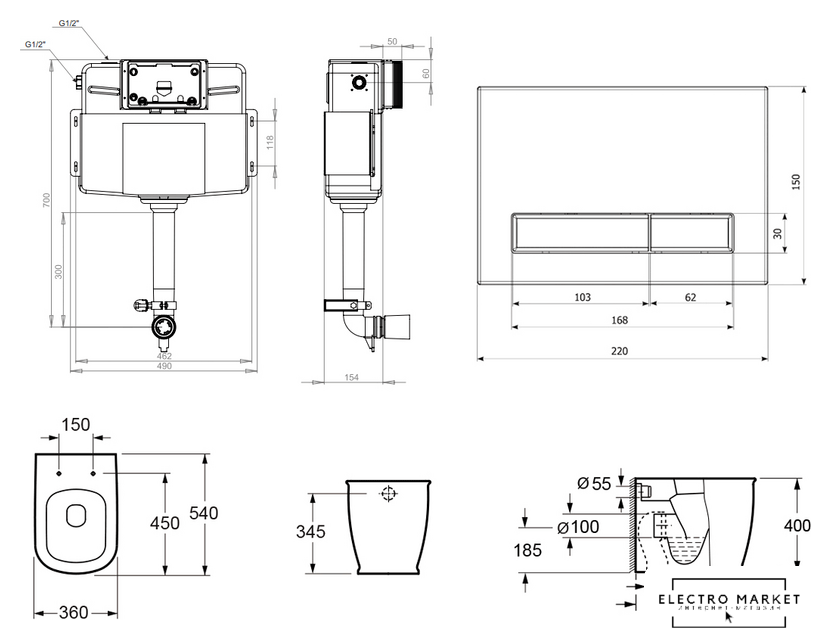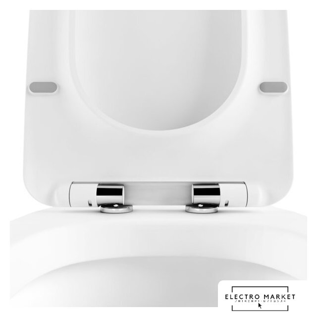 приставной, конструкция: без бачка, задний подвод воды, универсальный выпуск, двухрежимный слив, с сиденьем