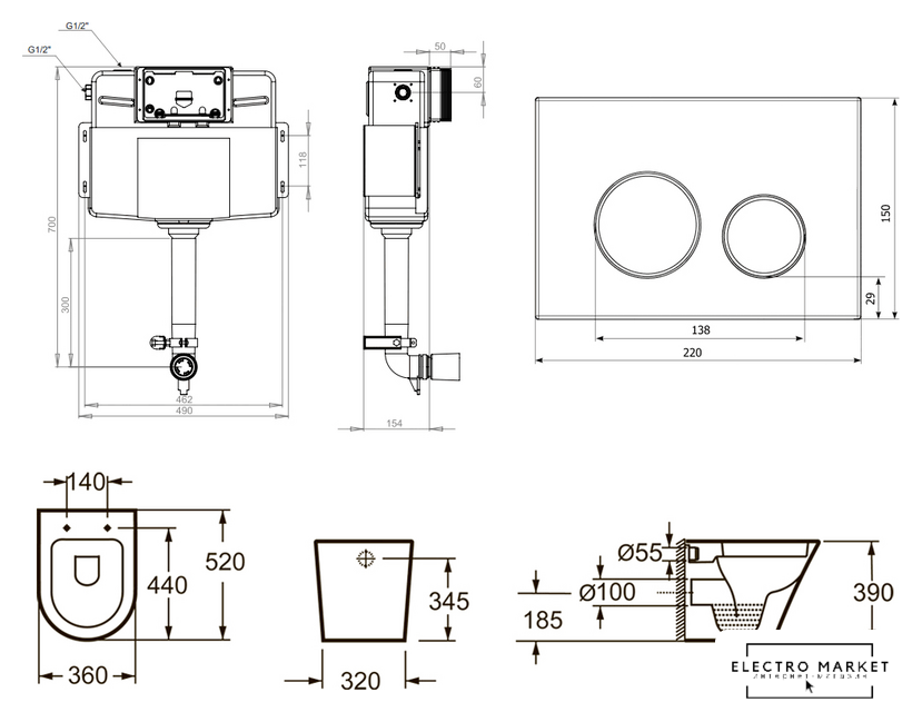 | Слив | двухрежимный |