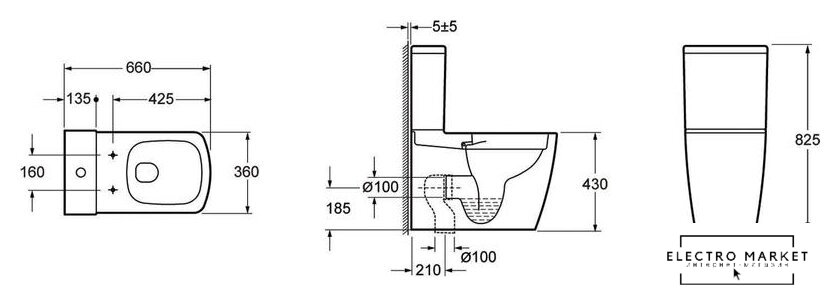 напольный, компакт, нижний подвод воды, универсальный выпуск, двухрежимный слив