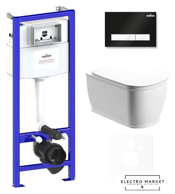 подвесной, без бачка, задний подвод воды, горизонтальный выпуск, двухрежимный слив, с сиденьем