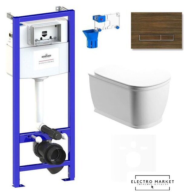 подвесной, конструкция: без бачка, задний подвод воды, горизонтальный выпуск, двухрежимный слив, с сиденьем