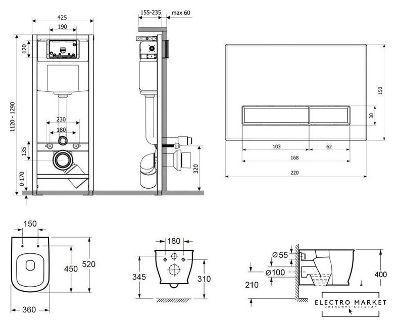 подвесной, конструкция: без бачка, двухрежимный слив по цене 1 955,00 руб.