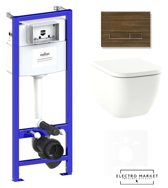 подвесной, конструкция: без бачка, задний подвод воды, горизонтальный выпуск, двухрежимный слив, с сиденьем