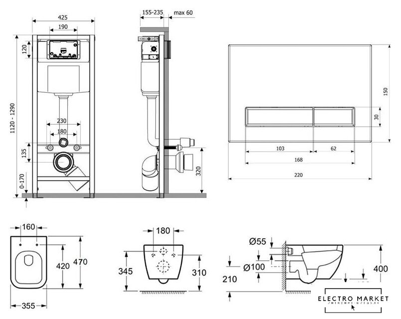 подвесной, конструкция: без бачка, двухрежимный слив по цене 1 155,00 руб.