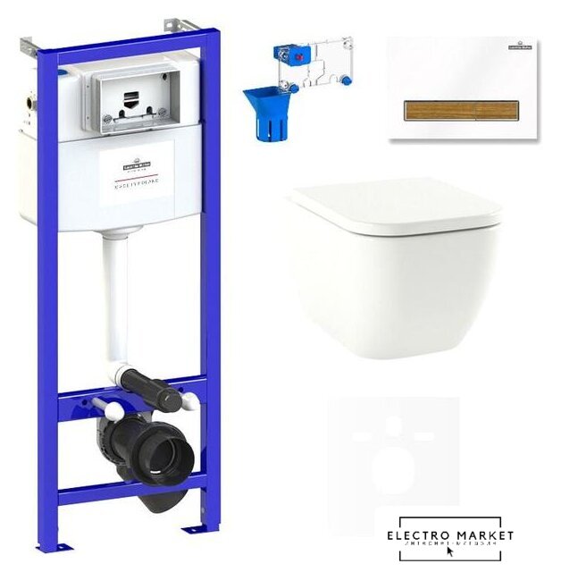 подвесной, без бачка, задний подвод воды, горизонтальный выпуск, двухрежимный слив, с сиденьем