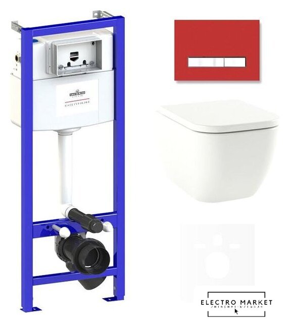 подвесной, без бачка, задний подвод воды, горизонтальный выпуск, двухрежимный слив, с сиденьем