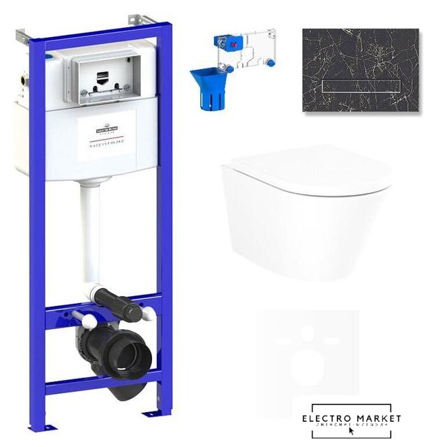 Унитаз подвесной Lavinia Boho Relfix Biore Compacto Rimless 7 в 1 75110167 (black иск. камень)
