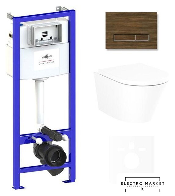подвесной, конструкция: без бачка, задний подвод воды, горизонтальный выпуск, двухрежимный слив, с сиденьем