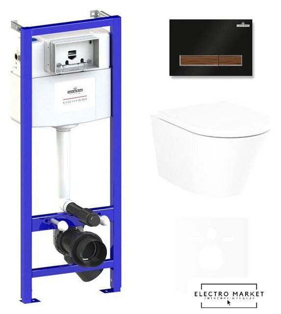 подвесной, без бачка, задний подвод воды, горизонтальный выпуск, двухрежимный слив, с сиденьем