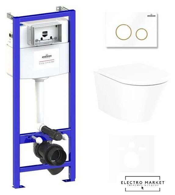 подвесной, без бачка, задний подвод воды, горизонтальный выпуск, двухрежимный слив, с сиденьем