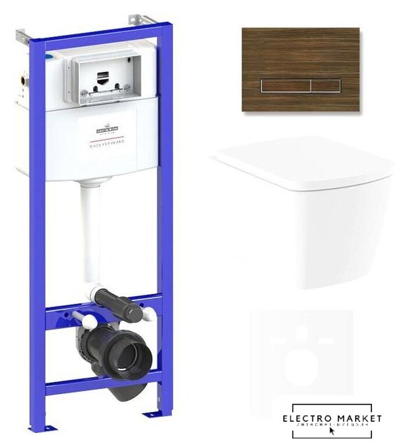 подвесной, без бачка, задний подвод воды, горизонтальный выпуск, двухрежимный слив, с сиденьем