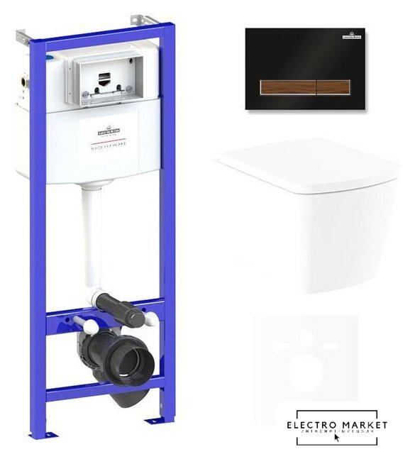 подвесной, конструкция: без бачка, задний подвод воды, горизонтальный выпуск, двухрежимный слив, с сиденьем