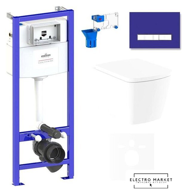 подвесной, без бачка, задний подвод воды, горизонтальный выпуск, двухрежимный слив, с сиденьем